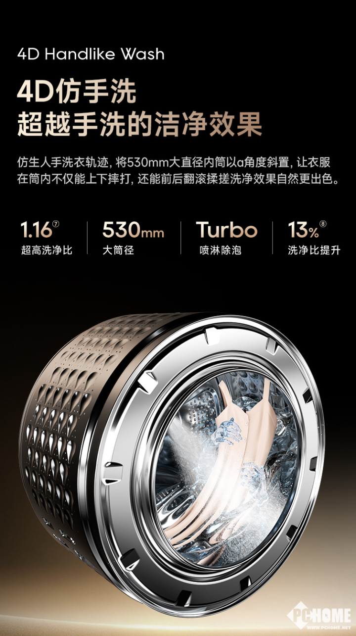 4D仿手洗系统模拟人手搓揉水流,让衣物在水中自由舒展。衣服在筒内不仅能上下摔打,还能前后翻滚揉搓,配合喷淋除泡技术,洗净比提升13%。