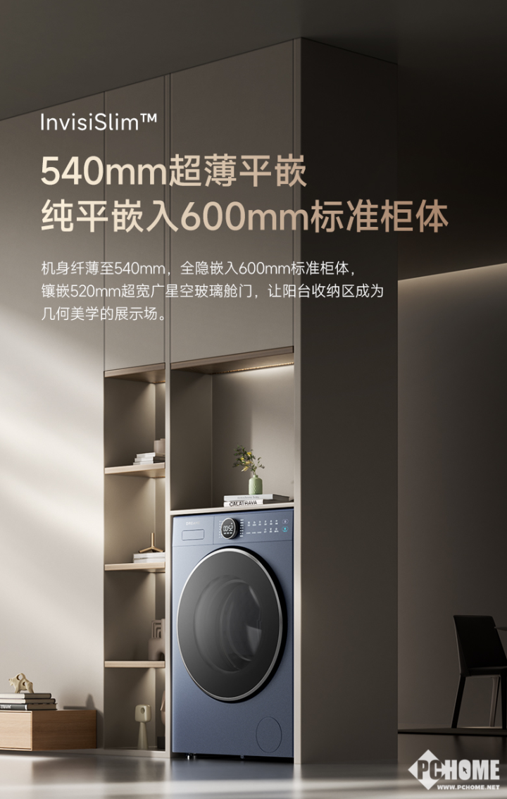 540mm超薄机身,纯平嵌入标准柜体,让洗衣机第一次与家居空间浑然一体;巴黎钉纹旋钮屏手感细腻,轻轻一转,仿佛拨动时间的节奏;AIxDD直驱变频电机带来宁静如夜的运行体验,让“深夜洗衣”不再是噪声与扰人的代名词。