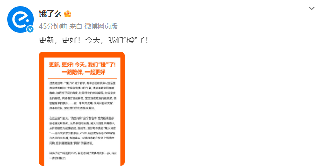 饿了么官方今天正式官宣将改名为“淘宝闪购”,即日起,饿了么APP更新至最新版本后,将全面焕新为“淘宝闪购”,原涉及“饿了么”品牌表达的各个场景,近期也将陆续完成焕新升级。