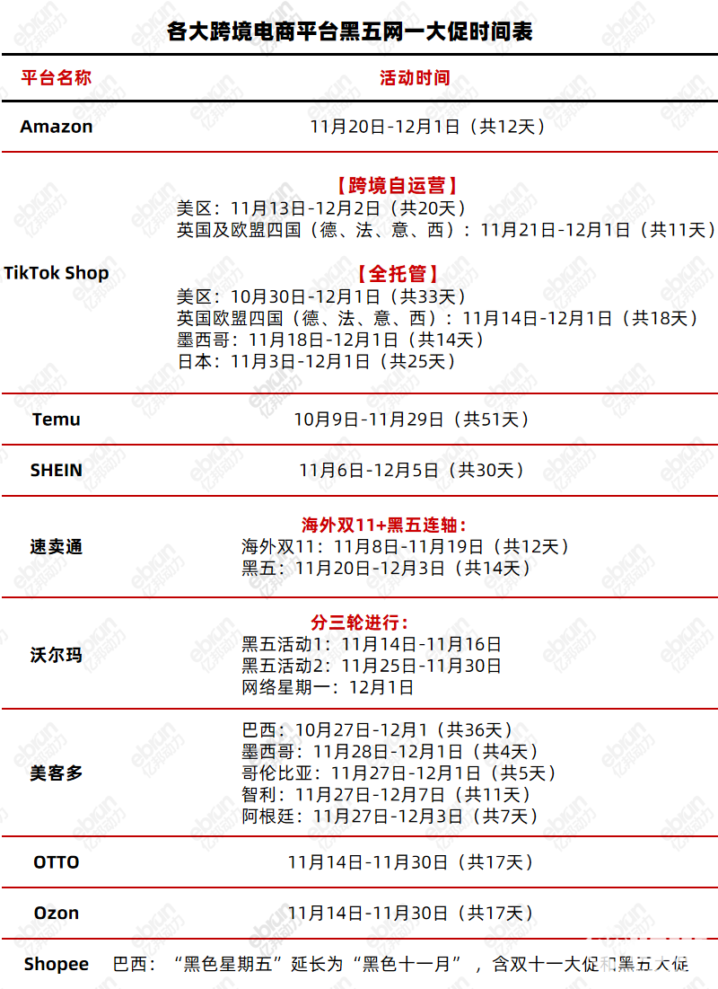 从表里时间可以看到,亚马逊把“黑五网一”拉到 12 天;TikTok Shop 覆盖 33 天;Temu 甚至做了 51 天的“超长黑五”。事实上,各平台拉长战线,是因为消费者已经不再被“单点爆发”吸引,而更关注“长期价值”。