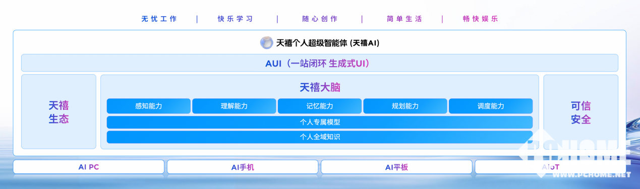 天禧AI由AUI、天禧大脑、天禧生态和可信安全平台构成,拥有感知、理解、记忆、规划、调度五大能力。天禧AI 3.5实现了“三大飞跃”:首先是个性化飞跃,依托“全时空主动记忆”技术,结合全域知识库,生成因人而异的个性化答案;第二是行动力飞跃,通过超级智能体工作群,实现多智能体协同,如AI播客、ChatExcel、超级互联3.0都是其代表应用;第三是交互体验飞跃,天禧AI 3.5具备多端协同感知,统一的AUI,让用户获得始终如一的智能体验。