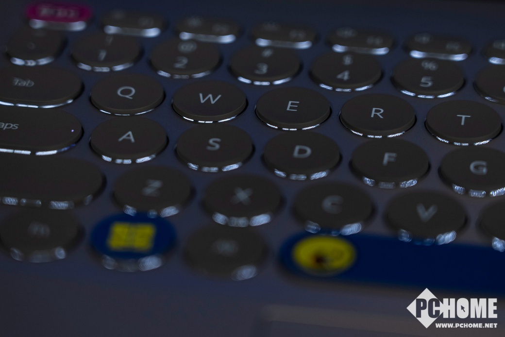 机身C面键盘的设计是非常少见的“圆形”键帽,官方称之为“波点艺术键盘”。与常见的方形键帽相比,圆形键帽确实多了几分艺术气息,颇有时尚感。
