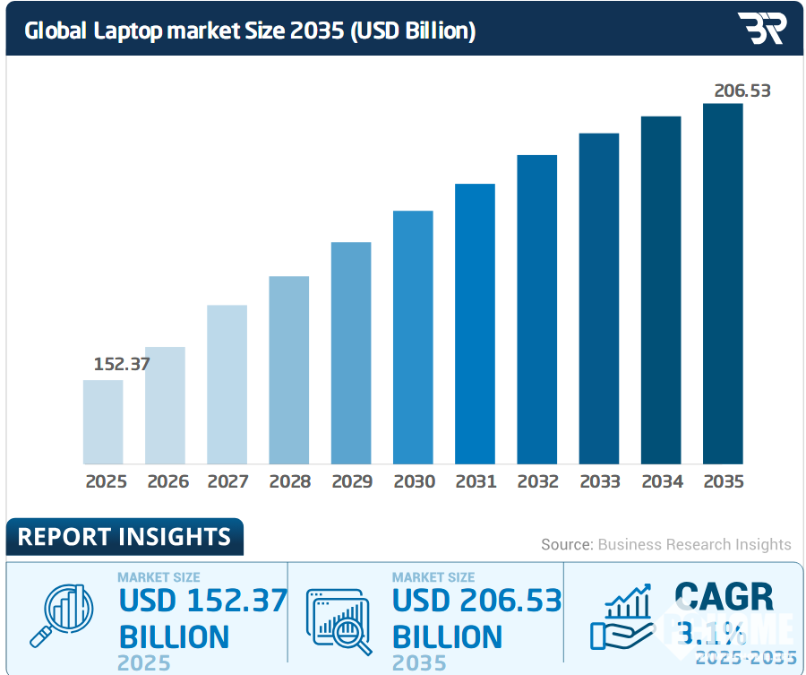 据Business Research Insights预测,2025年全球笔记本电脑市场规模约为1500亿美元左右,整体出货量实现个位数增长,但产品结构和均价水平明显改善。