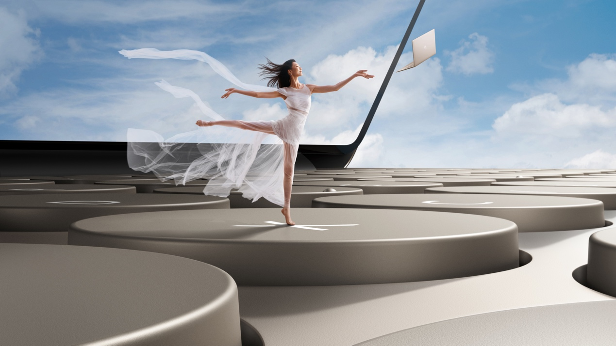 机身设计同样诠释了其对美学的思考。轻约1.32kg、薄至14.5mm的金属机身,采用“涟漪微曲”轮廓勾勒,线条流畅且富有灵动感。极夜灰与晨曦金两款雅致配色,一者沉稳深邃,一者明亮活力,共同凝练出现代职场的美学格调,在便携的基础上更添质感。