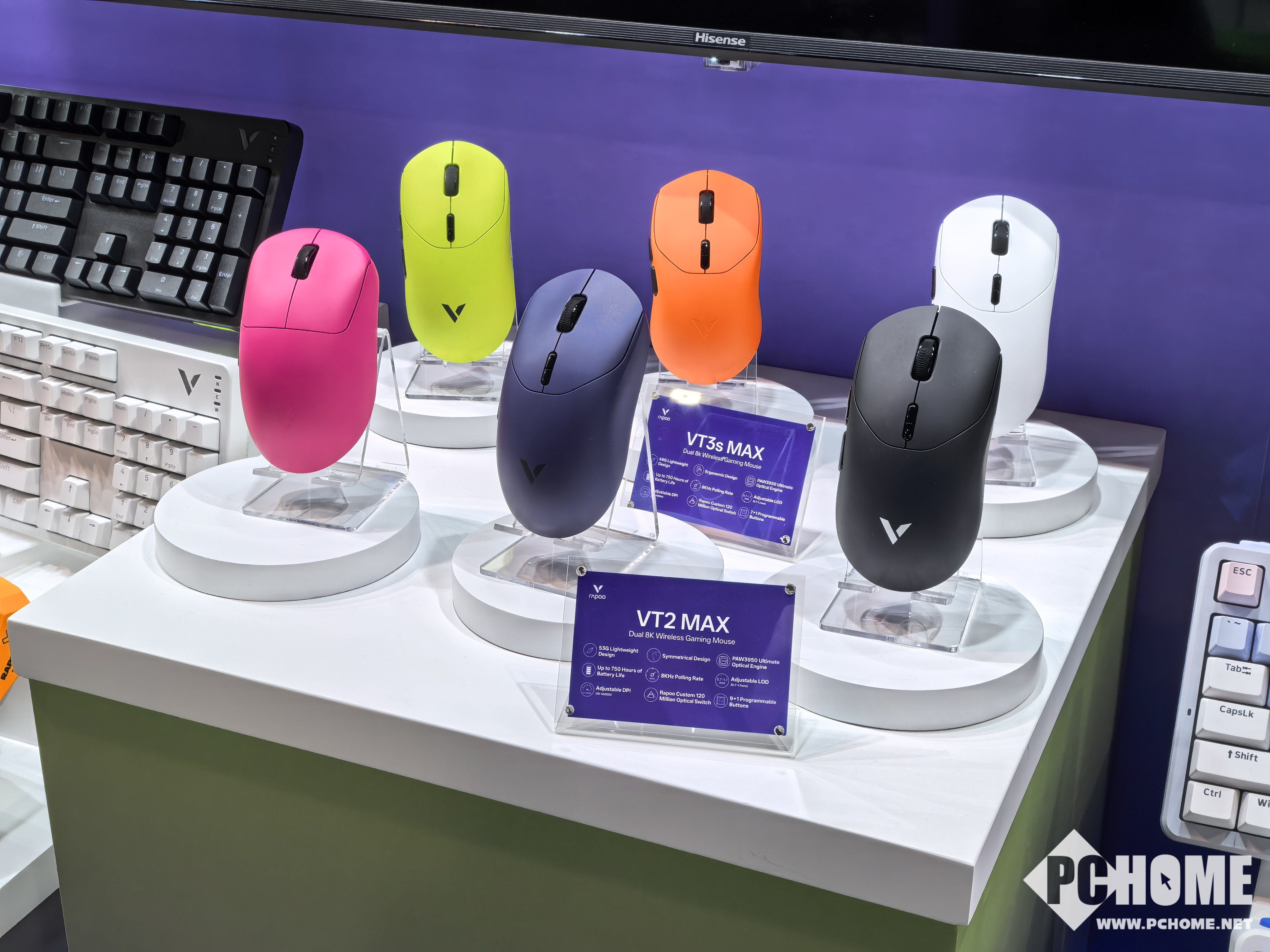 VT系列高端电竞鼠标,品牌定位高端电竞市场的核心产品线,主打无线极致性能、轻量化手感、精准电竞操控,目前以二代双8K系列为绝对主力,首发Nordic 54芯片,覆盖中小手、大手等不同手型,兼顾性价比与旗舰极致体验。将核心竞争力集中在自研无线技术、芯片与算法的深度整合,是硬核电竞玩家与性能追求者的优选系列。此次展出VT1、VT2、VT3、VT7、VT9系列多款鼠标。