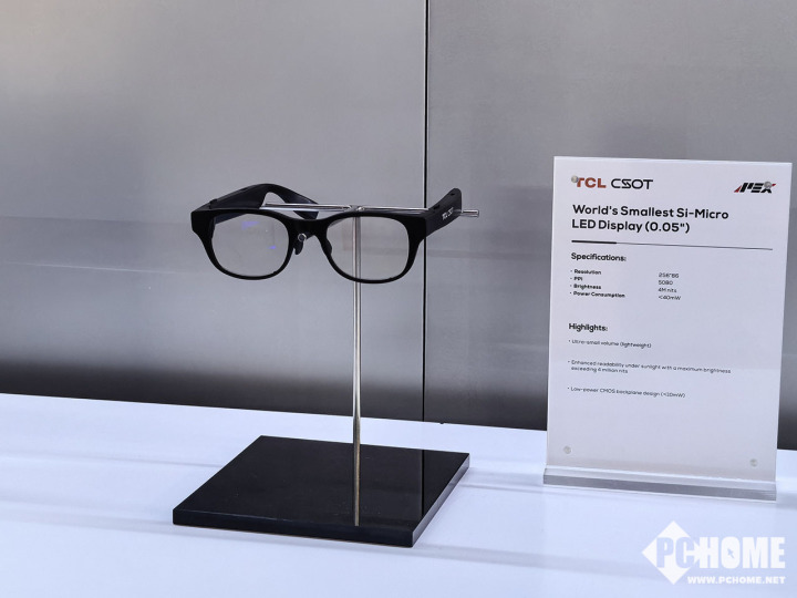 针对AR眼镜打造的单片全彩硅基Micro LED显示屏,在0.28英寸微小尺寸内实现1280×720分辨率,创下5131PPI的超高像素密度纪录,其自发光特性带来高亮度、高对比度与广色域表现,为轻量化显示设备发展提供了无限可能。
