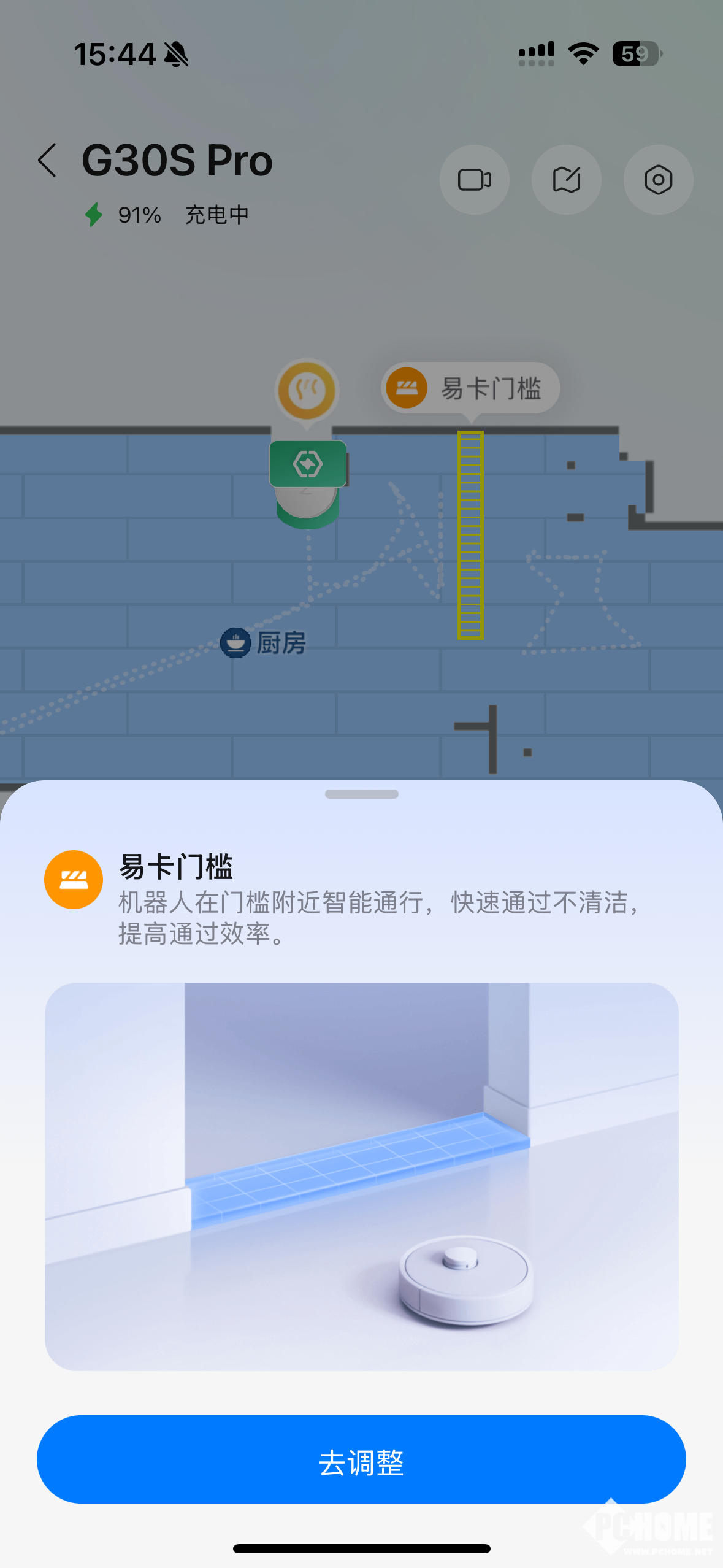 在清洁时遇到2-3cm的门槛时,石头G30S Pro会将万向轮智能抬升2cm,机器后退“助跑”,抬头越过门槛,从识别到门槛到翻越门槛,整个过程十分丝滑。