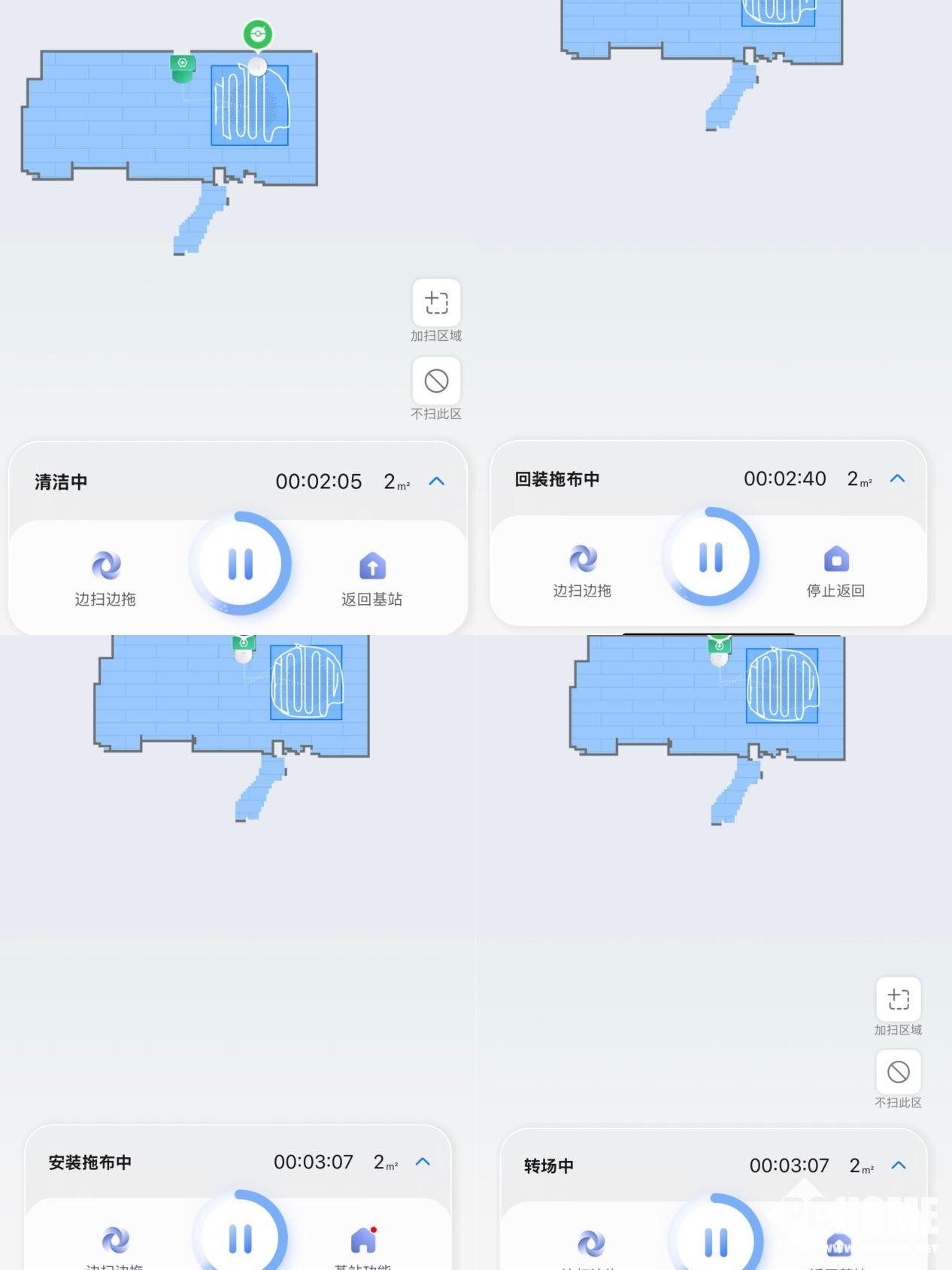 值得注意的,石头G30S Pro新增了主机不在基站也能独立洗拖布,保持拖布的实时洁净,也非常省时间。