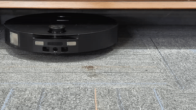 在清扫地毯时,左右驱动轮也能独立抬升2cm,假如家中的是中长毛地毯,石头G30S Pro会底盘整体抬升,就不怕地毯被打湿了。同时在清扫地毯时会进行地毯增压,增大吸力,更彻底的将地毯中的灰尘碎屑吸除。能看到在清扫地毯时抬升的高度很够,清扫完的地毯洁净且干燥。