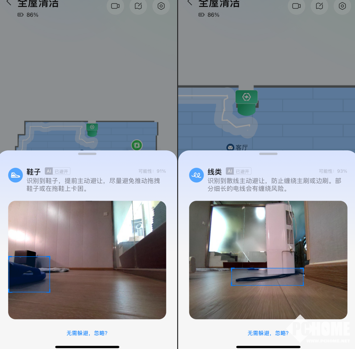 石头G30S Pro从双线升级为三线激光避障系统,新增横向扫描线让可视角度更宽,结合更智能的策略,石头G30S Pro能精准识别超280种物体。在实际使用中,拖鞋、插线板、电源线等障碍物都能精准识别并在App中标记。