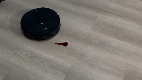 在地板撒上酱油以及踩过的蚝油印记,模拟日常生活的重污渍。石头G30S Pro支持RGB污渍识别,会识别到“湿污渍”,在App中也能查看到污渍的位置。面对湿污渍,石头G30S Pro的清洁策略是主动抬升主刷、关闭风机,对这个区域进行深度“井字形”拖地。