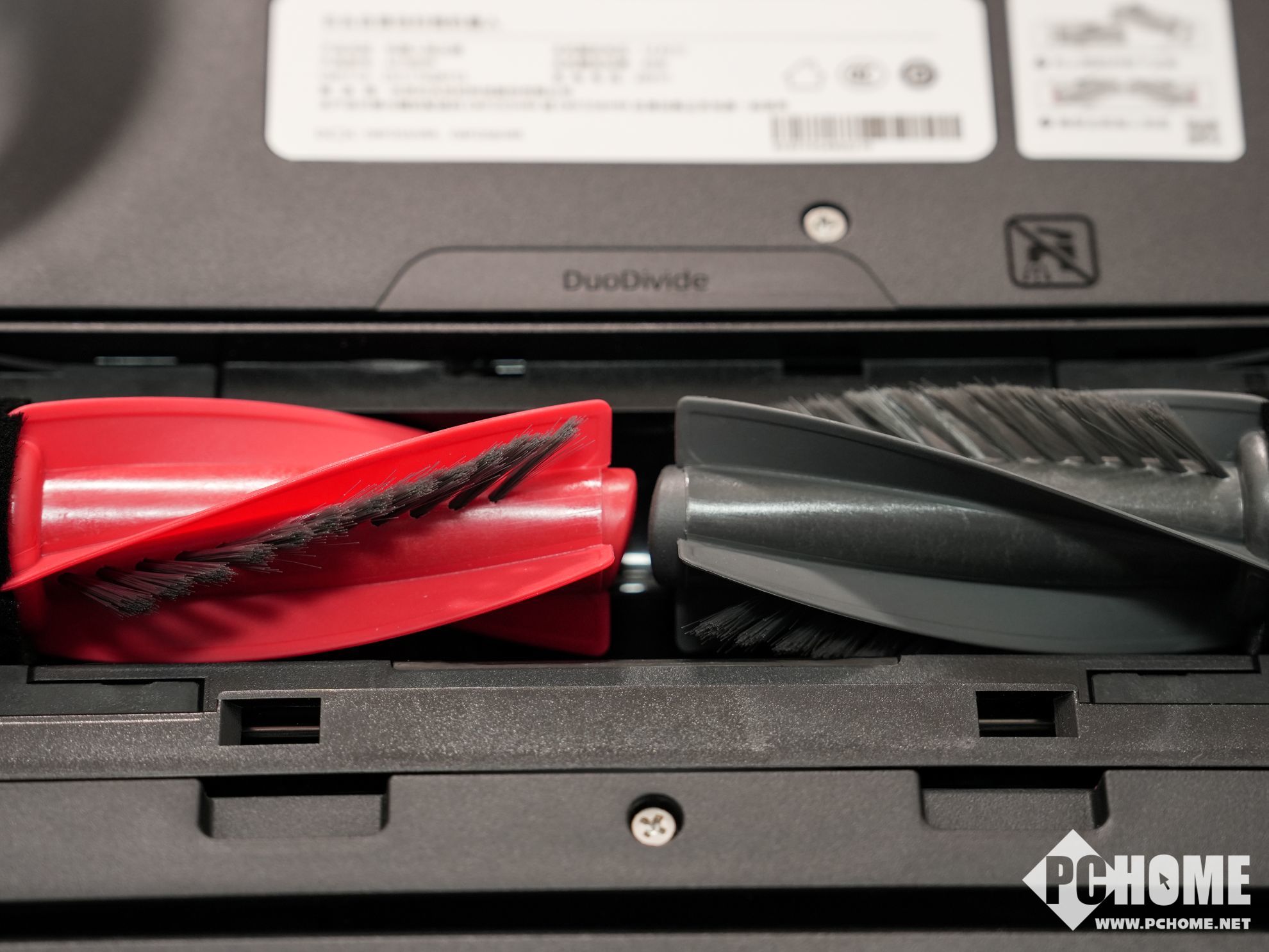 再来看看毛发缠绕情况,石头G30S Pro搭载石头首创0缠清扫系统,采用零缠绕双悬臂对刷系统。胶毛一体主刷采用45°V型螺旋设计与双悬臂结构,地板上的毛发会沿着主刷螺旋方向滑落至尘口,再由35000Pa大吸力吸走。