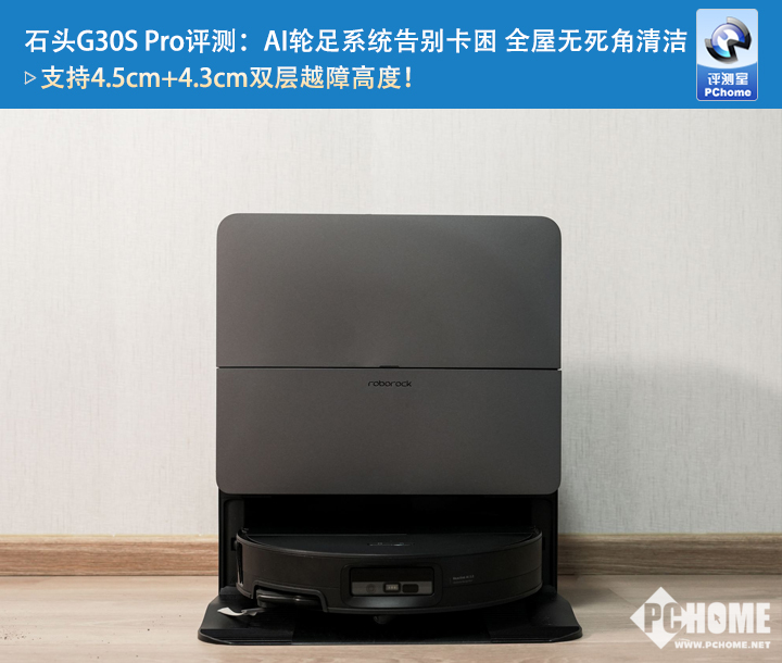石头G30S Pro此次升级为底盘升降3.0 AI轮足系统,配备智能升降万向轮与双区动轮系统,整机支持4.5cm+4.3cm的双层越障高度。地形适应能力更强,更能从容灵活的应对家中的门槛、地毯。