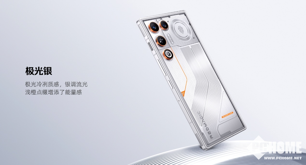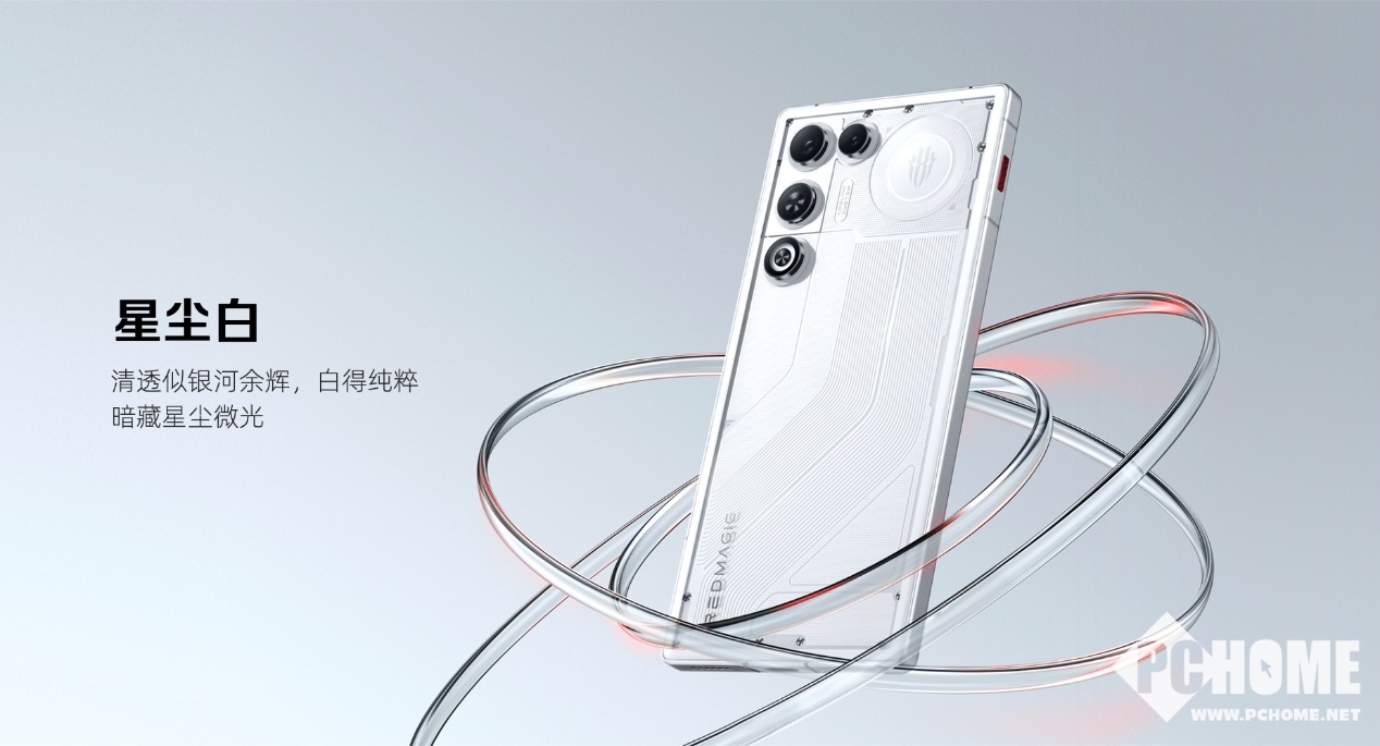 外观设计上,红魔11 Air带来星尘白、量子黑、极光银三款潮流配色,在延续红魔独有的透明美学的基础上,首次采用全系透明机身设计,并将黑胶唱片的复古质感、赛车跑道的速度激情与几何图形元素融入其中,搭配3D弧形玻璃后盖,既彰显极致科技感,又保证了舒适的握持手感。同时标志性的背部RGB灯得到保留,进一步提升电竞氛围。