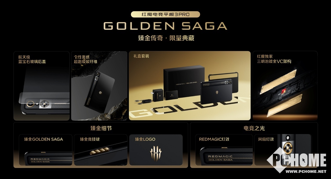 红魔 11 Pro+臻金传奇搭载行业独有的24GB+1TB的顶配存储组合,内部配备凯夫拉磁吸保护壳、专属磁吸散热器与臻金卡针、120W魔闪快充等一整套臻金体验,售价为9899元;而红魔电竞平板3 Pro 臻金传奇同样搭载24GB+1TB的顶配存储组合,售价7999元。