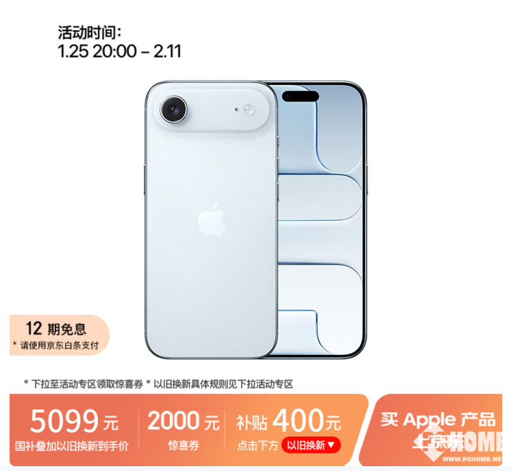 本次促销活动将于1月25日正式开启,持续至2月11日,优惠权益由三部分叠加构成:2000元惊喜券、400元以旧换新补贴及500元国补,三项权益叠加后可实现上述低价,为有换机需求的用户提供多重福利。