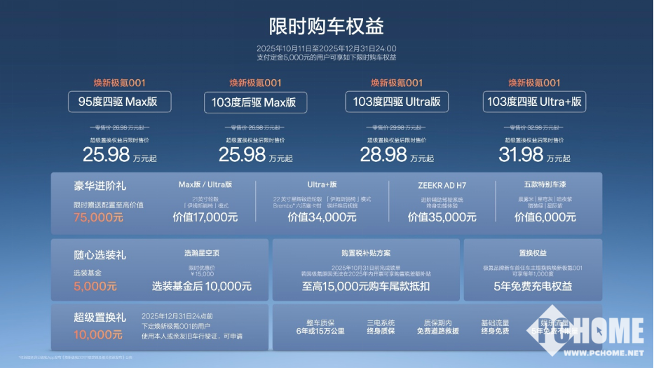 10月11日,焕新极氪001正式上市,官方零售价26.98万元起,限时置换权益后售价为25.98万元起。作为极氪品牌旗下猎装车型的标杆产品,新款001在延续经典猎装造型的基础上,实现了外观、内饰、性能、操控与智能安全的全面升级,以“更豪华、更科技、更性能”的姿态再次树立行业新标杆。自2021年首次推出以来,极氪001开创了“全能猎装”这一细分市场,并推动猎装车从小众走向主流。数据显示,2024年全球每售出10台猎装车中就有7台来自极氪品牌,其中001车型累计销量已突破30万辆,成为该领域的绝对领跑者。