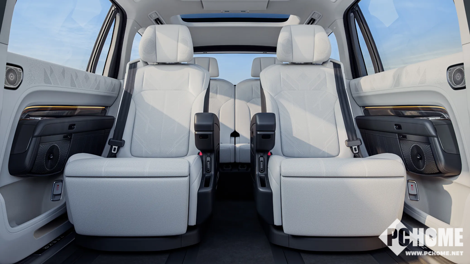 座舱体验是极氪 9X体现高端定位的重要环节,以“通透”打造旗舰级座舱体验。车内在用料选择、工艺细节以及空间布局上均强调质感与舒适性的统一。整车座舱面积达6.3平米,人均超过1平米,从第一排到第三排乘坐空间均为同级最大,座座皆从容。