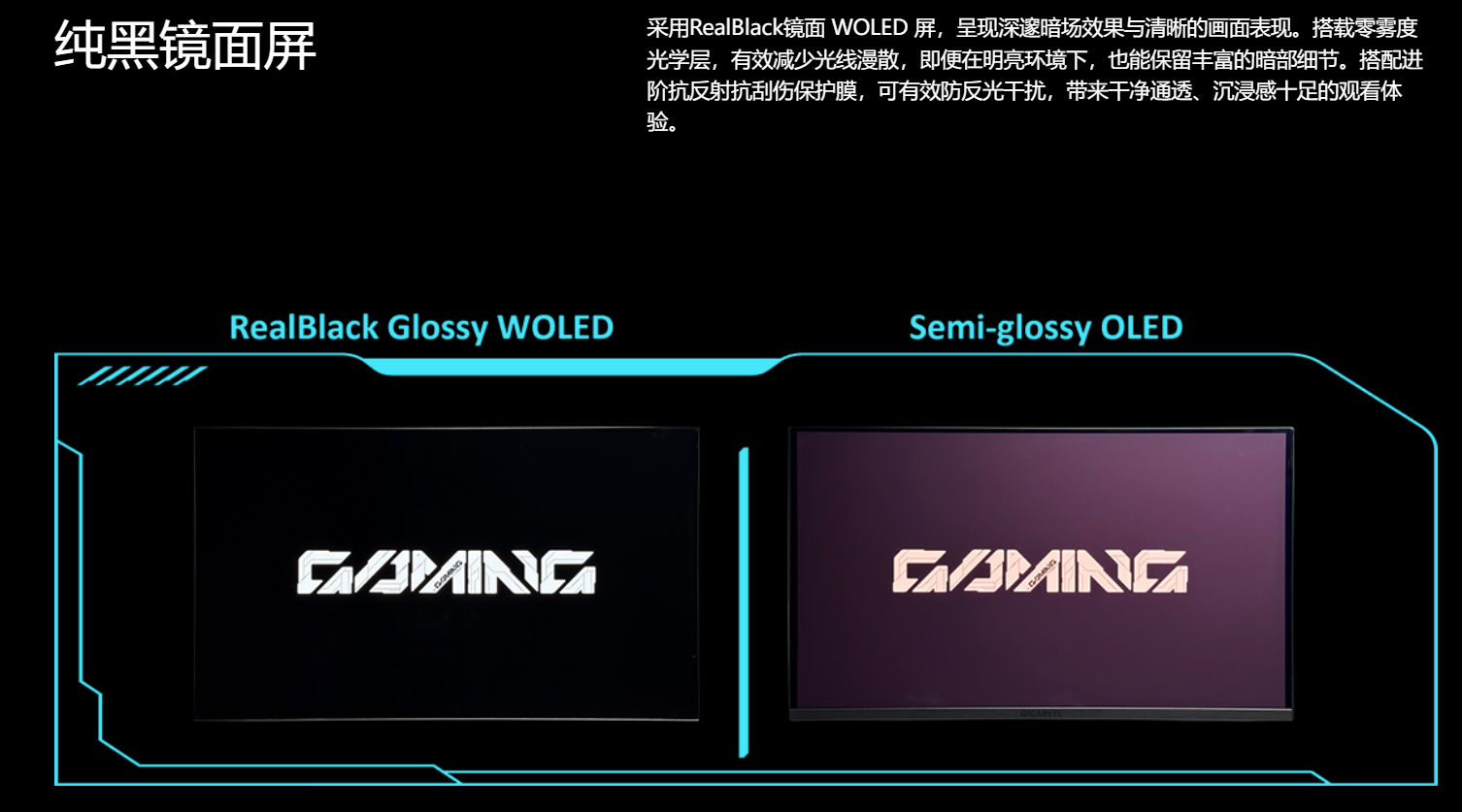 RealBlack Glossy WOLED技术,采用零雾度光学层,大大降低屏幕反射率,即使在室内灯光充足或窗边有阳光照进的环境下,也能有效减少屏幕倒影,避免因反光看不清画面细节,在搭配进阶抗反射抗刮伤保护膜,可进一步防反光干扰,让暗部场景的呈现更纯粹,沉浸感十足。
