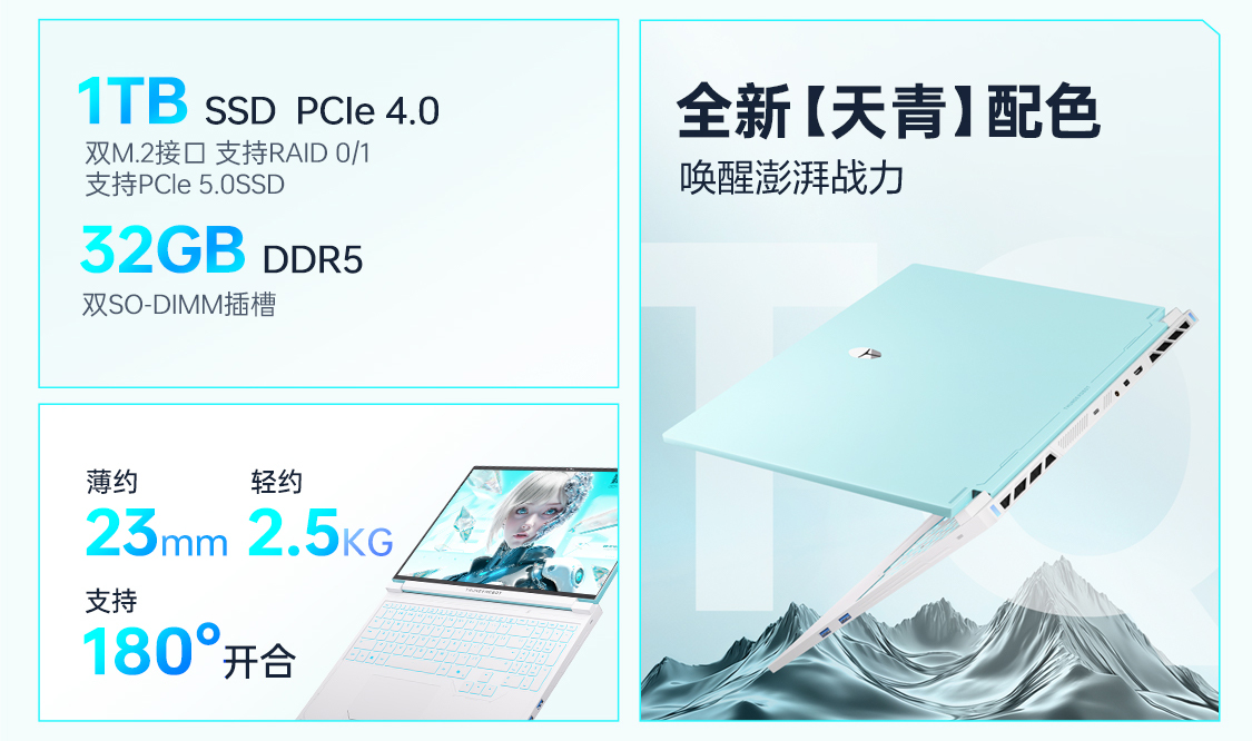 核心亮点配置可选搭载RTX 5070(仅i9版本)或RTX 5060两款显卡;标配16GB DDR5高频内存,内存带宽更高,能有效提升游戏加载速度与帧率稳定性,同时预留双内存与双SSD插槽,后续可根据需求升级硬件,灵活性较高,适合长期使用。