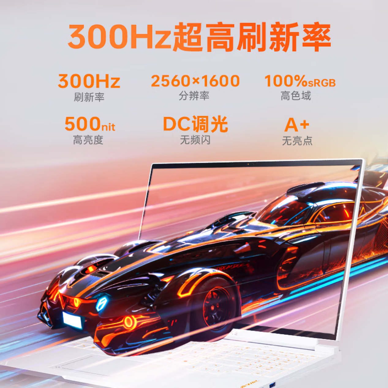屏幕配备16英寸2.5K曙光星幻屏,300Hz超高刷新率搭配100%sRGB高色域,屏幕响应速度快,能大幅减少FPS游戏中的画面拖影,适配对帧率要求极高的电竞游戏。屏幕支持DC调光,缓解视觉疲劳,同时支持180度开合;散热采用D面大面积散热孔设计,搭配曙光极寒散热架构,游戏时能做到硬件温度稳定,无降频现象;并且机身罕见地配备了全尺寸游戏键盘,按键布局合理,误触率低,键程适中,适配长时间游戏操作,无需额外配备外接键盘。