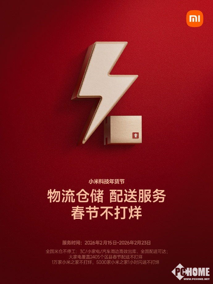 在春节期间,米家仓库不停工,3C/小家电/汽车周边全国配送可达;大家电覆盖2405个区县,春节配送不打烊。1万家小米之家不打烊,5000家小米之家1小时闪送不打烊。此外,官网在线客服7*24小时守护,电视服务专线延长至24点,门锁服务24小时在线。