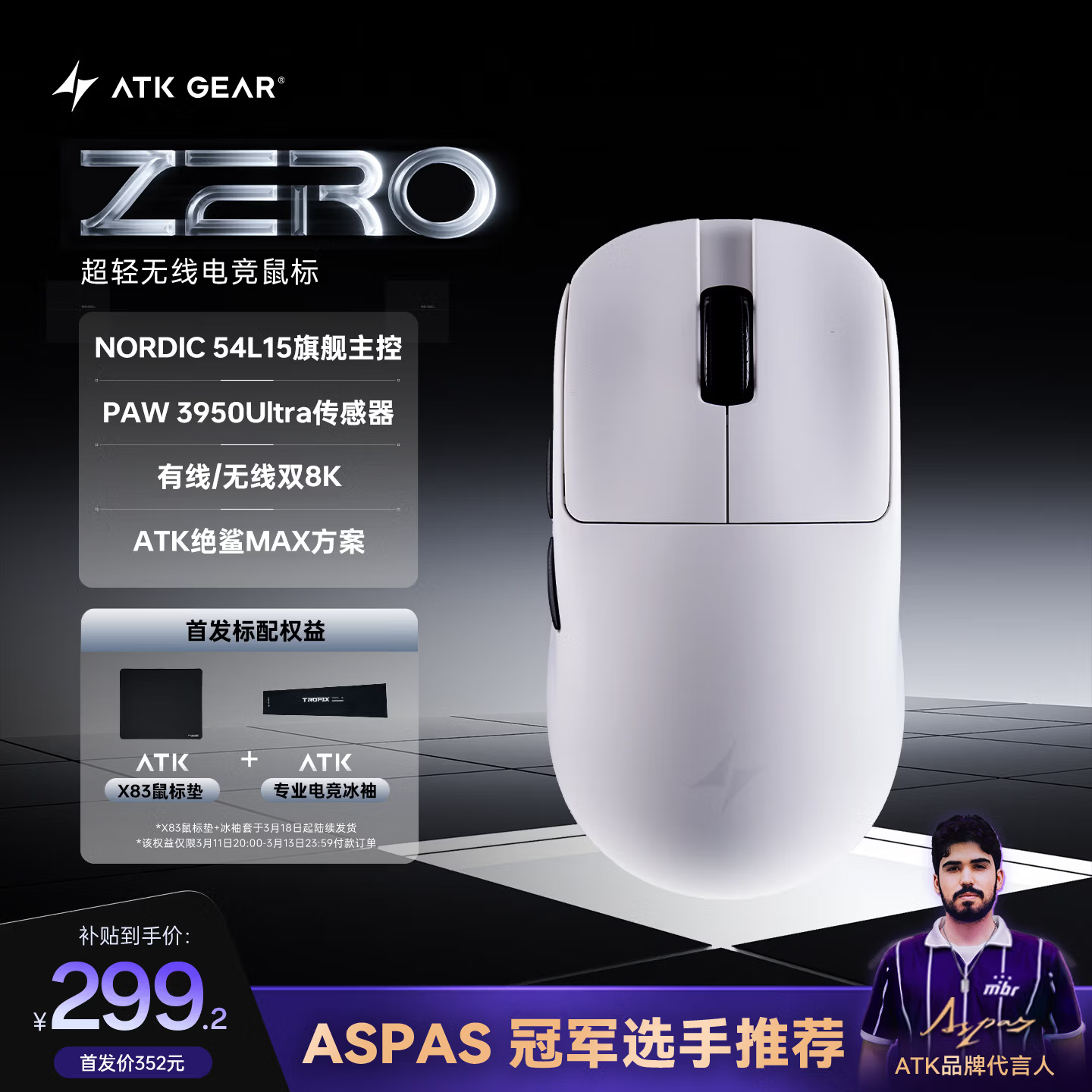 首发福利丰厚,下单即赠99元鼠标垫与39元电竞冰袖,晒单额外赠送129元定制鸭舌帽。目前产品已开启预热,3月11日可在ATK官方电商平台及合作商城下单选购。