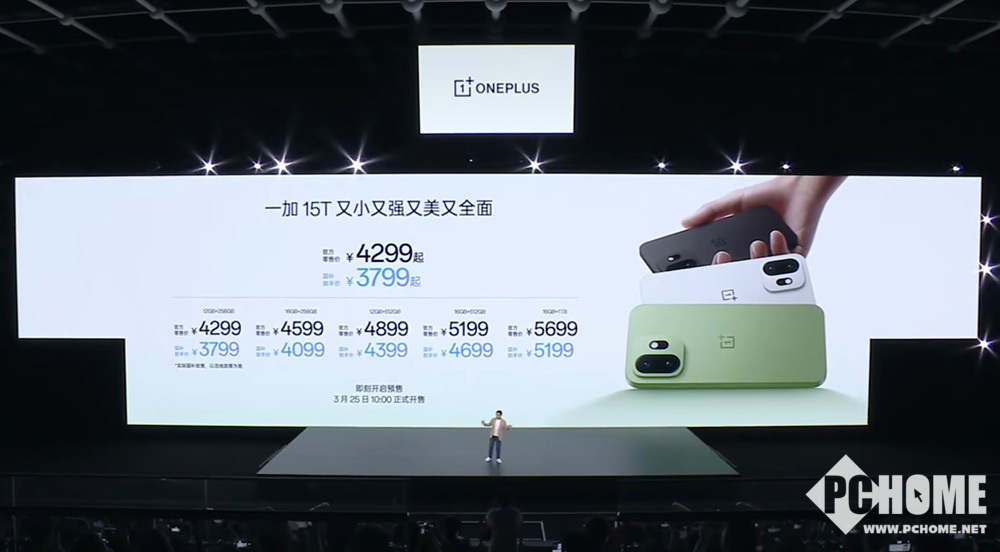 PChome 3月24日消息,一加正式推出全新小屏旗舰机型一加15T,这款定位非常规迭代的破局之作,以6.32英寸小巧轻薄机身,塞进7500mAh大电池,实现手感与硬核体验的双向兼顾,重新定义小屏旗舰的产品标准。