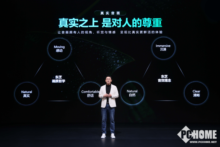 在画质系统上,东芝确立真实还原、视觉舒适、沉浸感动三大技术坐标——精准复现自然色彩与创作者意图,优化显示参数匹配人眼生理节律,消除屏幕边界感实现深度沉浸。在音频系统上,东芝构建沉浸声场、自然延展、清晰解析三维度量——构建360°全维声学空间,保证全频段声源准确还原,强化不同内容的细节呈现。