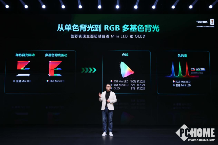 本次发布的核心技术——原色RGB Mini LED,是东芝在显示领域的又一次跨越式升级。不同于传统单色背光,东芝电视直接从光源底层出发,采用红、绿、蓝三色独立控制光源,实现接近100%的色纯度与最高110% BT.2020的超广色域,成为行业首个获得Pantone广色域与高立体色域双项认证的显示产品。