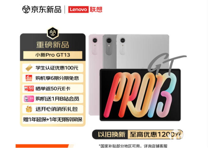 目前,这款联想小新Pro GT 13平板已在京东平台全面开售。在首发优惠期间,京东为用户提供了200元的限时折扣,叠加国家以旧换新补贴后,到手价最低可至2379元起。针对大学生用户,还可额外叠加100元的教育优惠,最终到手价仅需2294元起。在内存涨价导致终端产品价格普遍上调的市场环境中,小新Pro GT 13以亲民的价格提供了旗舰级别的综合享受,有效地填补了2000元价位段全能AI平板的市场空白。消费者现在打开京东APP,搜索“同学你要小新呀”,即可购买这款集成了旗舰性能、智慧AI体验与极致性价比于一体的全能平板产品,从而在当下的内存涨价潮中,稳稳地获得高性价比的旗舰级体验。