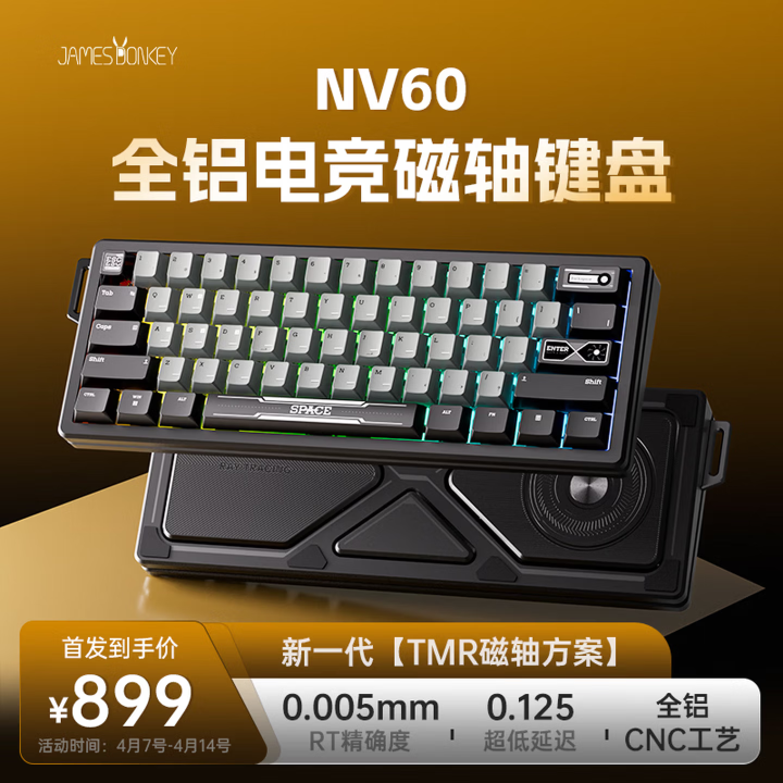 PChome4月8日消息,(Jamesdonkey、贝戋马户)NV60磁轴键盘已于近期正式发售,售价899元,其最大亮点是融合英伟达显卡设计元素、60%配列全铝机身以及专业级磁轴性能,瞄准高端电竞与客制化市场。