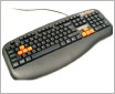 打开包装就知道这款键盘完全是个游戏键盘,在W、A、S、D和↑、↓、←、→8个按键使用了橙红色特制软胶,与整体黑色形成鲜明的对比,突出其重要的位置,即使在昏暗的环境中也能看清楚。用手触摸这几个按键,外面套有一层特制防滑橡胶套,增加了按键与手指的摩擦系数手感非常舒适。除了特殊的8个按键,键盘整体采用了磨沙处理,有明显的颗粒感,使用起来舒适而且耐磨,增加了键盘的使用寿命。