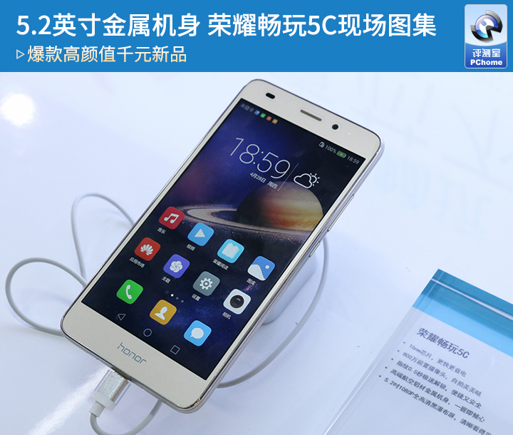 荣耀畅玩5C配备一块5.2英寸屏幕,前面板下方首次加入了荣耀品牌LOGO。硬件配置方面,荣耀畅玩5C搭载自家麒麟650芯片,这款芯片也是今年华为在中国市场推出的首款产品。照相方面,荣耀畅玩5C配备前置800+后置1300万像素摄像头,支持指纹解锁,并且可以在熄屏的状态下可进行指纹支付。续航方面,荣耀畅玩5C配备一块3000mAh电池,正常使用情况下,可以支持1.36天。