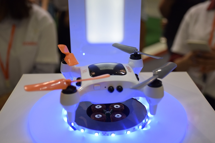 CITE 2016也是无人机的主场,各种类型的无人机能让你一饱眼福。其中安果无人机,的体积和手掌大小相似,机身的轴距仅为120毫米,外形精致小巧仅重128g,可以说是最小的无人机。