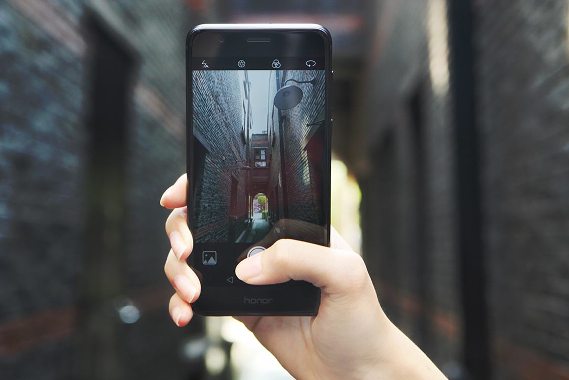 外观方面,荣耀8采用双面2.5D玻璃设计;超窄的可视边框只有0.4mm,同时采用全新镜面屏幕边框设计。荣耀8的背部玻璃后壳油墨丝印层、多层光学镀膜、3D光刻层、光栅纹理载体层、AR光学增透层、2.5D第三代大猩猩玻璃和AF指纹易擦拭涂层等15层工艺匠心打造,效果炫美;机身整体符合对称美学理念,屏幕的质感和整机手感都让人舒服。