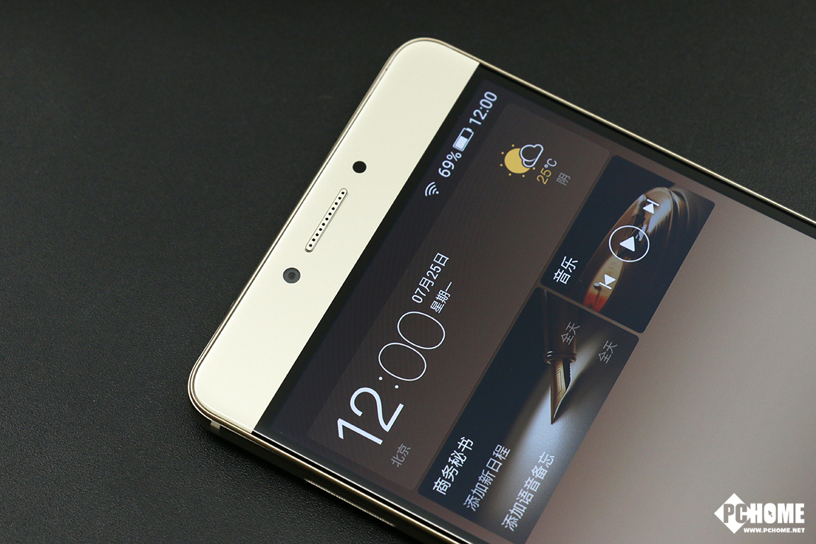 金立M6配置了前置800万像素的摄像头,听筒和摄像头之间采用经典的对称设计。同时,还提供了美颜和补光功能,整体给人的感觉简单传统。