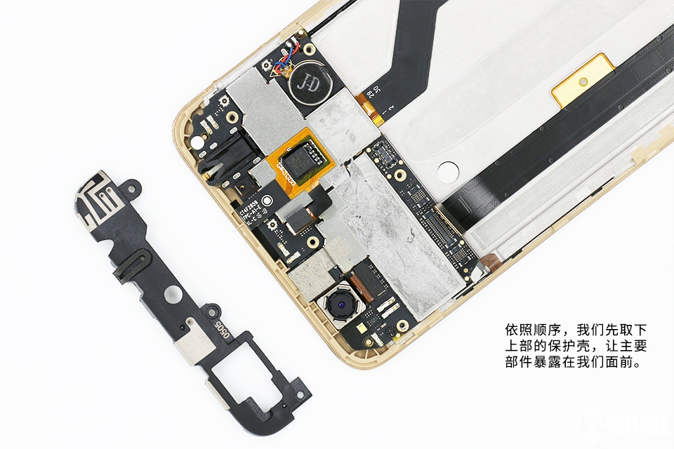 依照顺序,我们先取下上部的保护壳,让主要部件暴露在我们面前。