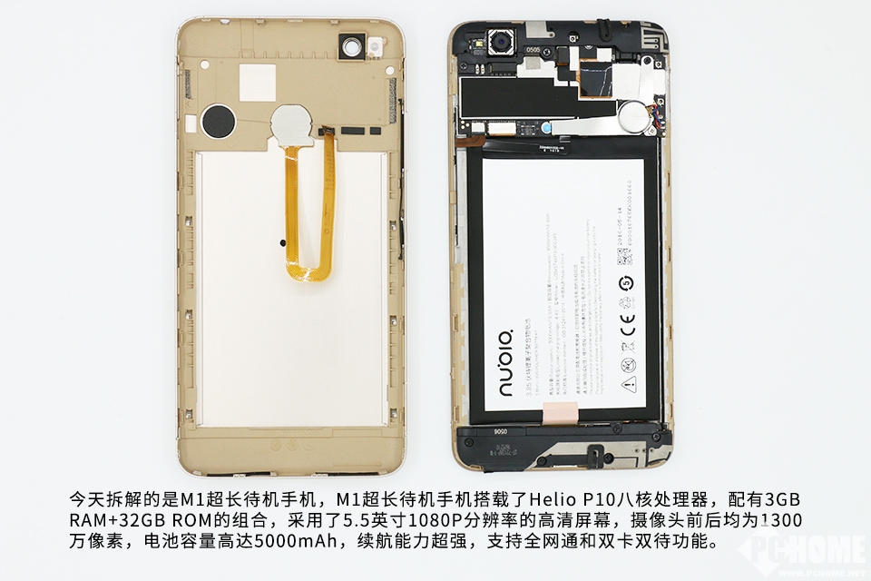 今天拆解的是M1超长待机手机,M1超长待机手机搭载了Helio P10八核处理器,配有3GB RAM+32GB ROM的组合,采用了5.5英寸1080P分辨率的高清屏幕,摄像头前后均为1300 万像素,电池容量高达5000mAh,续航能力超强,支持全网通和双卡双待功能。