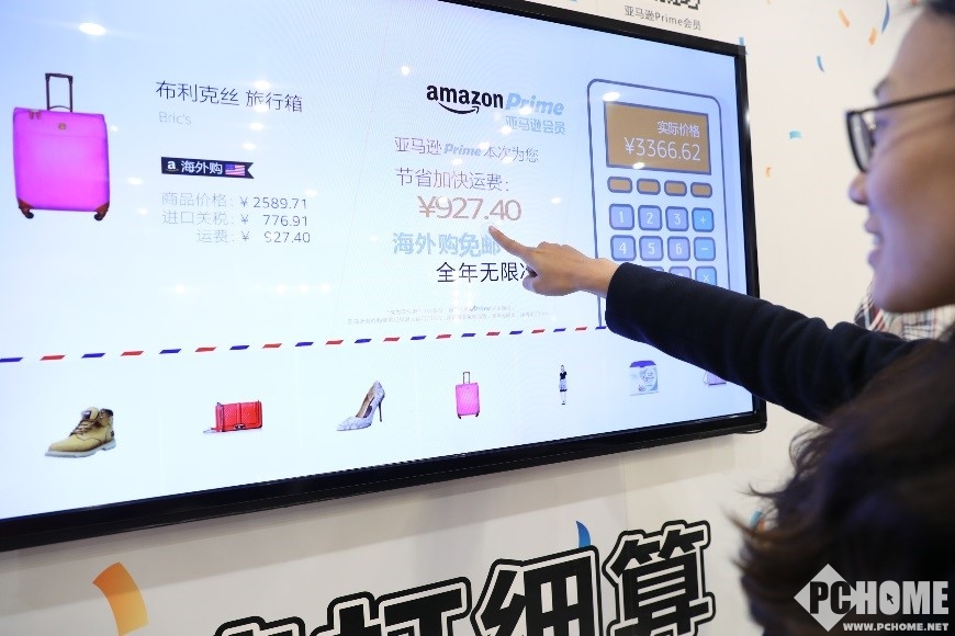 除了拿出手机不停拍拍拍之外,还有很多好玩的互动游戏。首先来到的是亚马逊的Prime会员体验区——“精打细算”。在这里,你可以通过一个巨大的计算器算出成为亚马逊中国Prime会员之后,每次购物能节省多少运费。到底节省了你多少真金白银立刻一目了然。