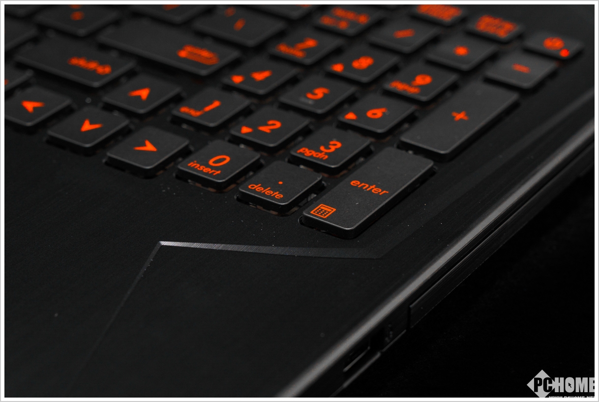 华硕飞行堡垒ZX53VD回归了极简的设计风格,在顶盖中央靠上的部分我们可以看到华硕标志性的ASUS,其两侧各有一条凸起的斜切线,与机身尾部相连,形成了一个线条感十足的造型,这样的设计使得顶盖不会显得单调,再加上拉丝工艺的使用,看起来更加无比刚毅。