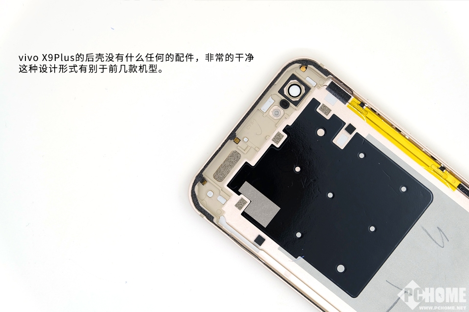 vivo X9Plus的后壳没有什么任何的配件,非常的干净,这种设计形式有别于前几款机型。