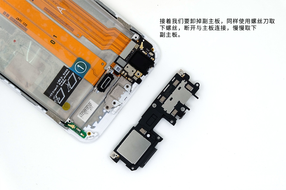 接着我们要卸掉副主板,同样使用螺丝刀取下螺丝,断开与主板连接,慢慢取下副主板。