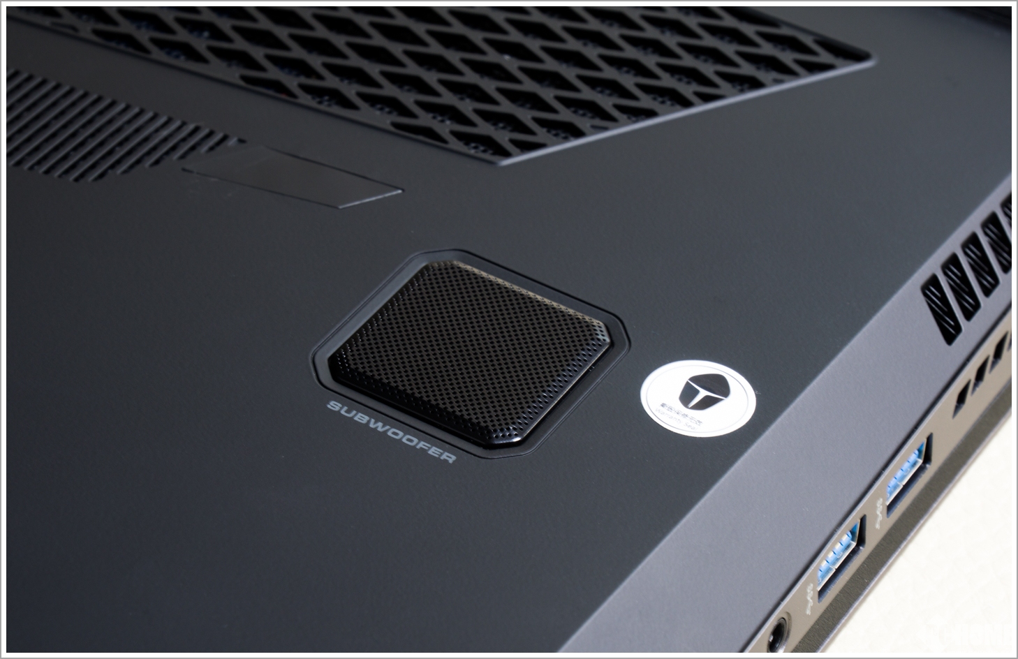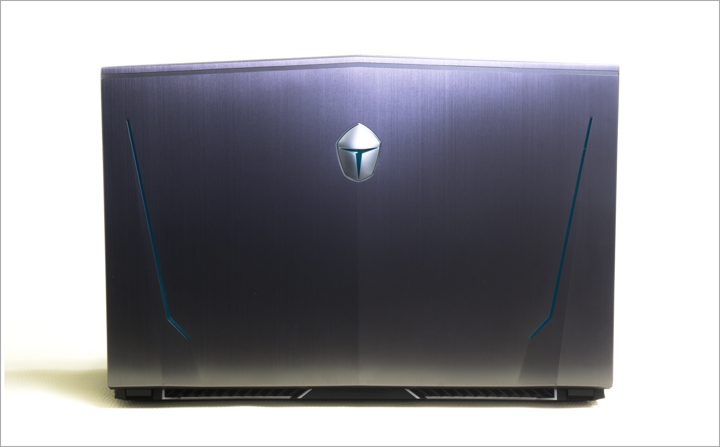 一体成型的金属机身棱角分明,钢筋铁骨。背壳采用高强度玻璃纤维的复合材质,兼顾了轻薄和坚固性的双重需求,其厚度仅为28mm,重量较外星人整整轻了600克。