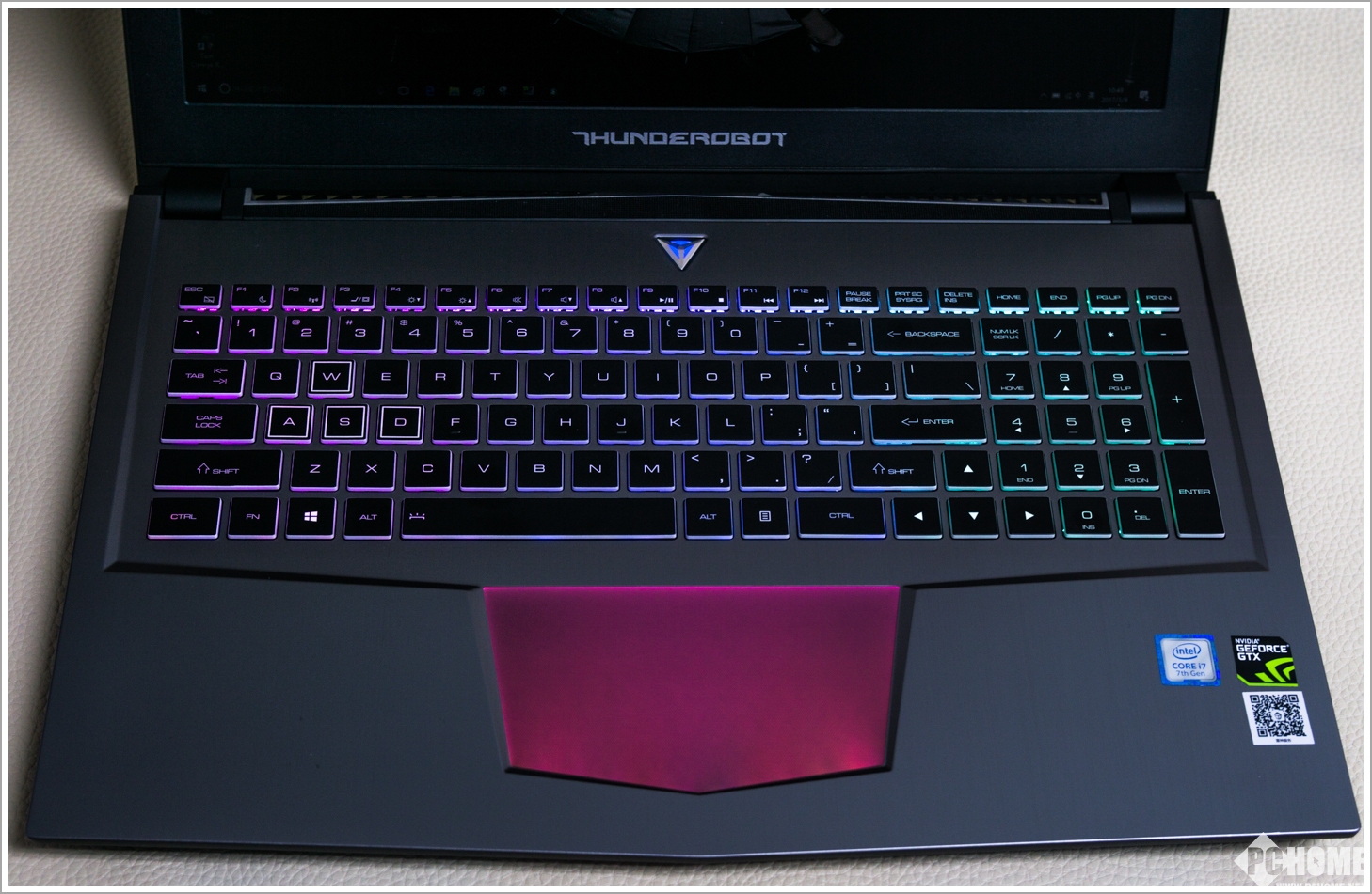 雷神Dino的最大亮点,则是量身打造的RGB自由光域的全新概念,其核心是全球首片全透极光一体式触摸板。历时1年多的反复研发测试,才实现了目前所有同类产品中面积最大,造型不规则,透光度最好最均匀,且触控一体的触摸板,其在设计和使用体验上完全超越了外星人。