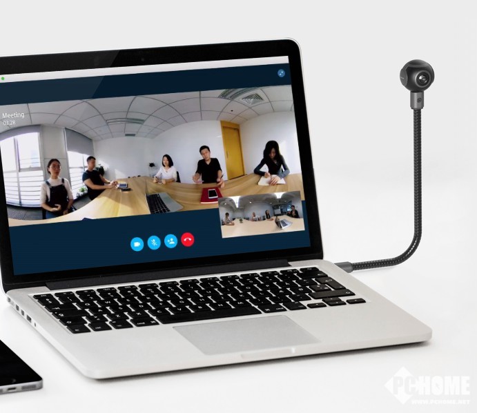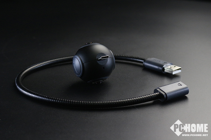 Insta360 Air还配套有了具备支架功能的电脑数据线,在连接Insta360 Air与电脑后,使得电脑也能畅享全景视野。