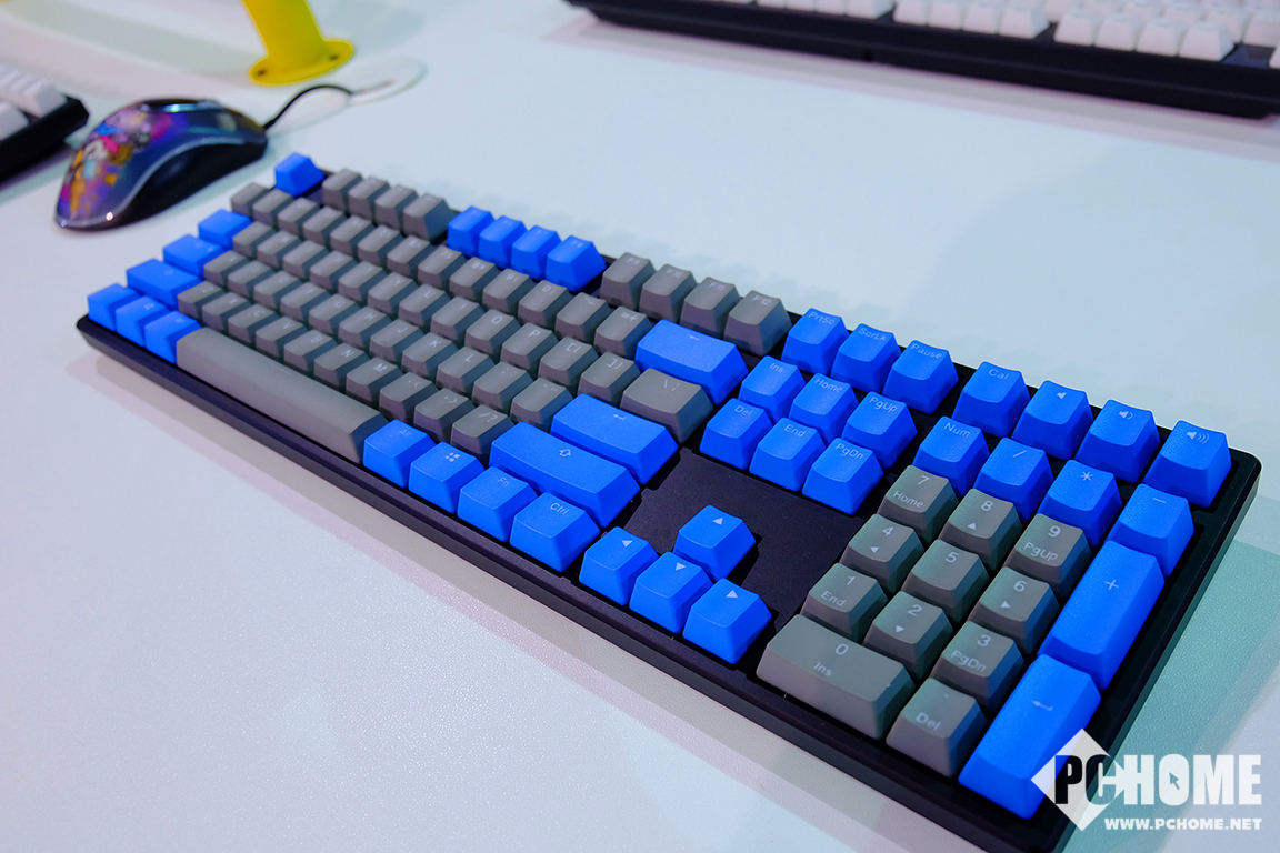而Ducky则展出了全新的One系列热升华机械键盘,该系列产品使用了Cherry MX轴体,在原有的灰白、灰蓝两种颜色之上增加了两种颜色,草木奶绿和冰激凌粉色,青春靓丽。