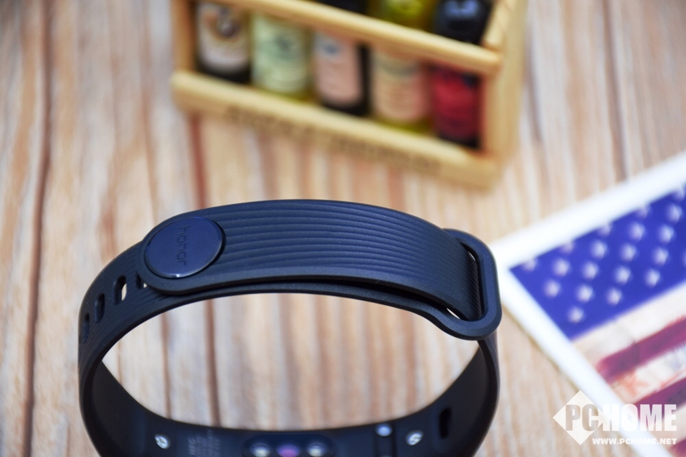 【PChome智能硬件频道美图】荣耀手环3的外观辨识度虽然不高,但流畅丰富的曲线变化令其不乏沉稳内敛的设计感。它采用了TPU亲肤材质表带,双表扣的设计也令佩戴的稳定度有所提升。