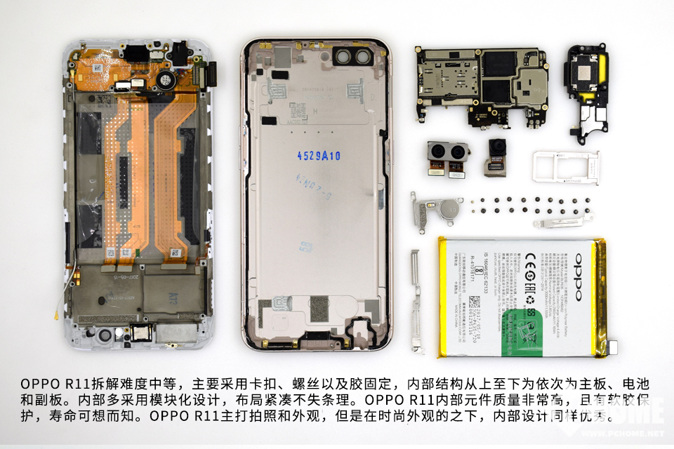 为拆疯 美的不只是外观 OPPO R11拆解:外观设计时尚,内部布局紧凑且合理,科技感十足。