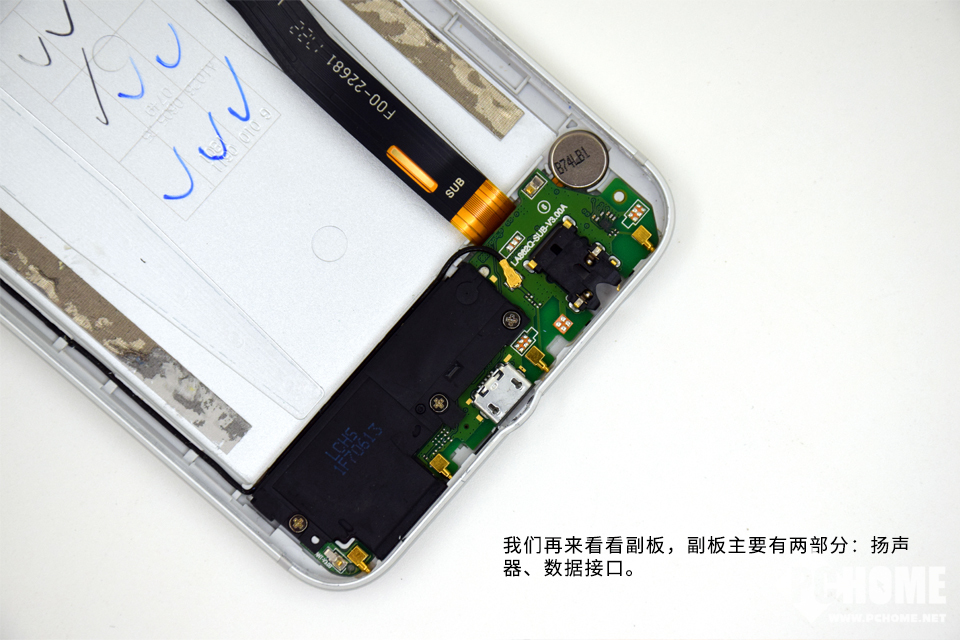 我们再来看看副板,副板主要有两部分:扬声器、数据接口。